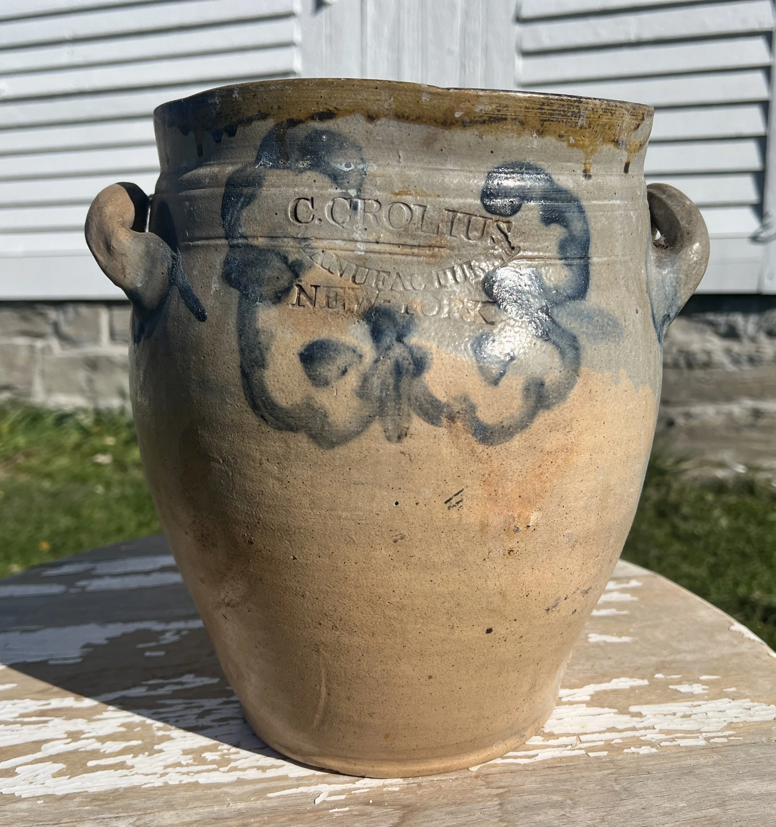 Excellent C. Crolius New York Blue Decorated Stoneware Crock w/ open handles.