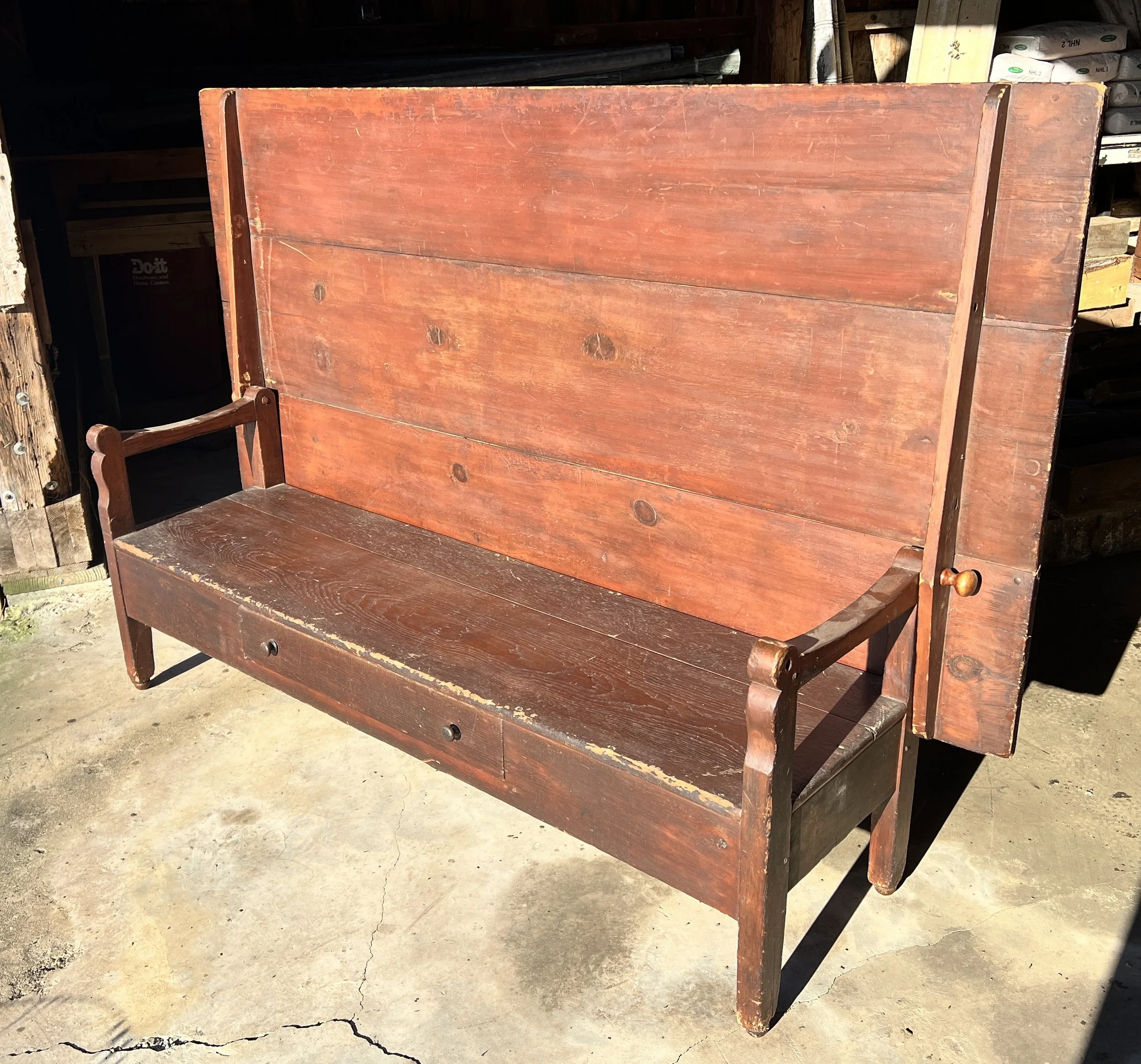 Extra Large w new leather J M Young Mission Oak Arts and Crafts c1910 Settle - SOLD