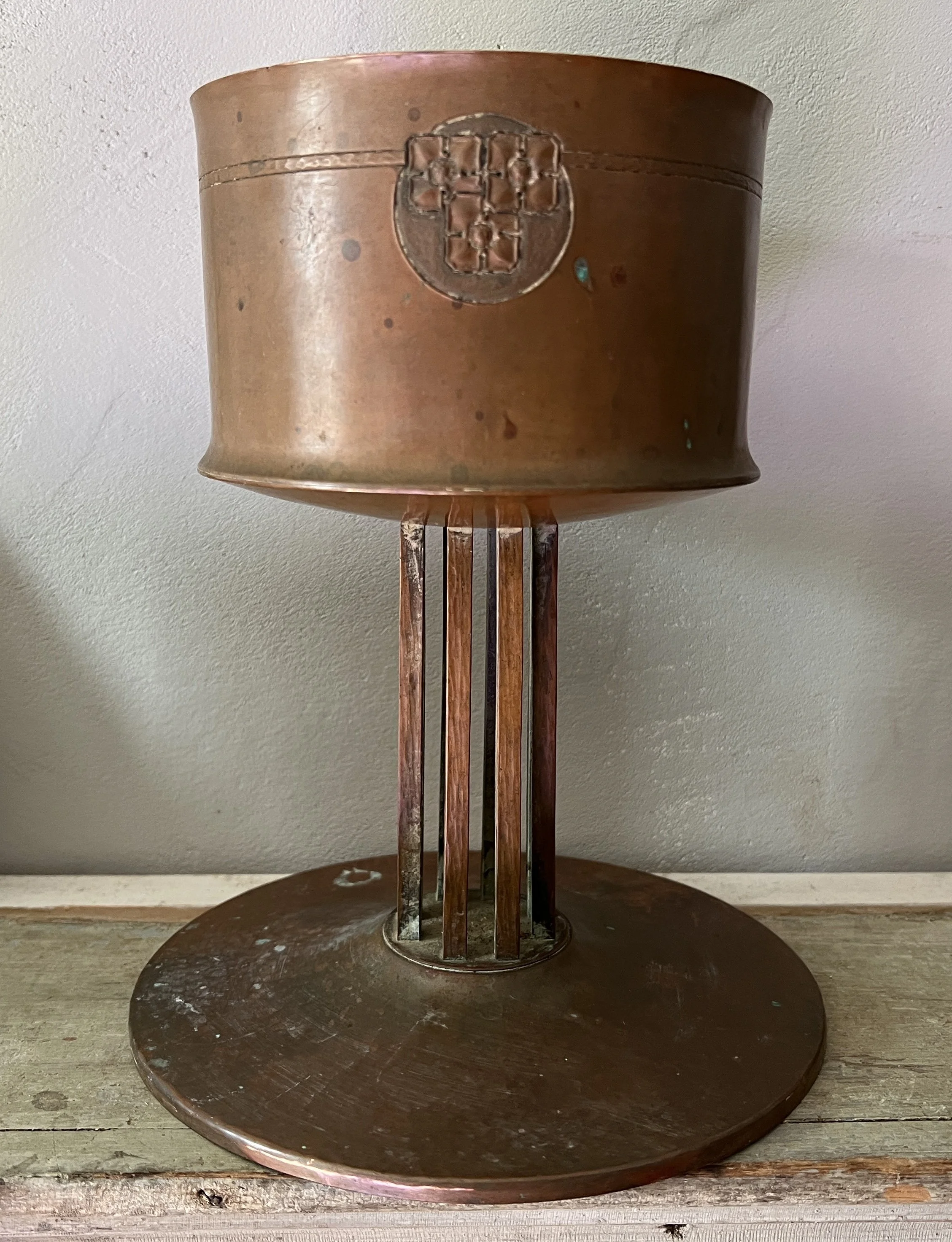 Signed Gustav Stickley Arts and Crafts Hammered Copper Jardiniere
